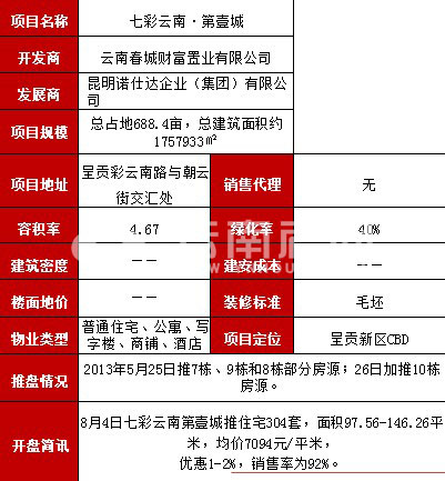 七彩云南第壹城開盤分析:推售304套 均價7094元/平米
