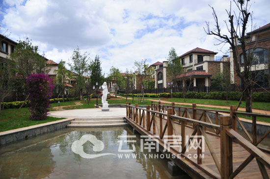 而拋開玉龍灣公園這一家門口的配套不提,龍灣一號自身的托斯卡納風情也足以讓人沉醉。四季女神在廣場上圍成一個圈,正中央的噴泉,永不停歇的噴涌著水花。遠處,木質的小橋靜默的佇立,而那些透著意大利式風情的建筑在藍天白云之下,顯得格外美麗。天空的藍,特別純凈,更將那一份異域風情襯托得無懈可擊。在這樣的環(huán)境中,時光仿佛是靜止的。毫不夸張的說,龍灣一號的社區(qū)景觀就像是一個以托斯卡納異域風景為主題的公園。