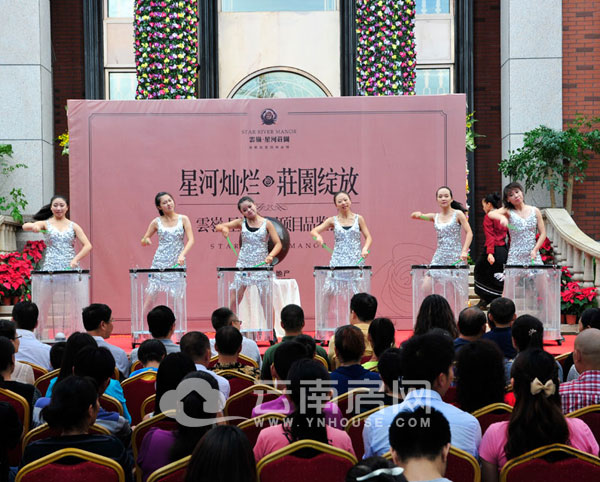 2013-08-1114:43:28主持人:尊敬的各位來(lái)賓,“云嶺星河莊園項(xiàng)目品鑒會(huì)”現(xiàn)在開(kāi)始!首先讓我們以一段激情的水鼓舞開(kāi)啟我們本次的篇章,有請(qǐng)靚女們上場(chǎng)。(水鼓舞表演)。