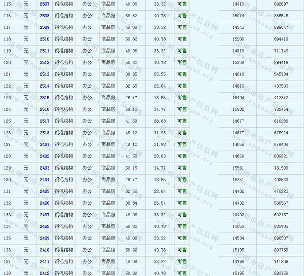 六合天城(A2地塊)準售房源及房價公示