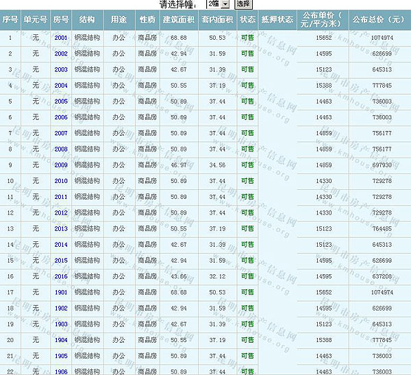 根據(jù)云南省物價局關(guān)于發(fā)布《云南省商品房銷售明碼標價實施細則(試行)》的通知,現(xiàn)將該項目商品住房的準售房源及每套房屋價格向社會公布,房地產(chǎn)開發(fā)企業(yè)應(yīng)嚴格按照公布價格,商品房銷售明碼標價實行一套一標。商品房經(jīng)營者應(yīng)當(dāng)對每套商品房按照建筑面具進行明碼標價,否則,房產(chǎn)登記機關(guān)不予登記備案。準售房源及房價信息如下: