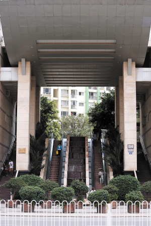 該小區(qū)3個出入口都需要爬30多級臺階才能進(jìn)出小區(qū),而F座一樓其實有一個通道不用爬樓梯即可到達(dá)小區(qū)的出入口。從此處進(jìn)出小區(qū)的多為E座和F座的住戶,很多住戶根本不知道F座還有一個出入口。劉大媽說:“這里雖然方便,但住在其它座的居民則要先乘電梯上二樓再輾轉(zhuǎn)進(jìn)入F座。上下班時間,光F座進(jìn)出行人就擠得不行,根本無法滿足其他住戶的需求!