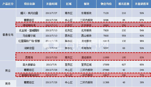 西南;▓@洋房領(lǐng)銜住宅價(jià)格,開(kāi)盤(pán)銷(xiāo)售率較好項(xiàng)目是朗悅灣、紅星國(guó)際、西南海與匯都·愛(ài)尚街區(qū)。