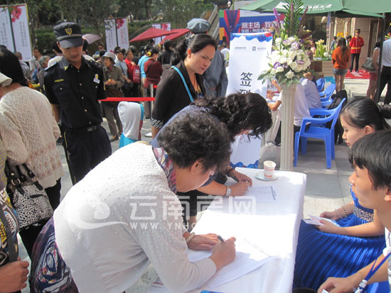 今日上午10:00,位于建設(shè)路昆明理工大學(xué)西門斜對面的協(xié)信天地營銷中心一片熱鬧喜慶,新老客戶紛紛到場,雖然天氣炎熱,但客戶臉上卻充滿了笑意,簽到處、冷餐區(qū)、禮品區(qū)、團購區(qū)以及貴賓區(qū)陸續(xù)聚集了前來參加活動的客戶。上午10:30左右,在活力四射的啦啦操表演中活動正式開始。隨后,主持人上臺介紹了學(xué)府•協(xié)信天地項目概況并讓臺下觀眾參與答題,之后進行了第一輪抽獎,抽出了3名三等獎,1名二等獎,1名三星手機,被抽中的幸運客戶分別獲得復(fù)古瓷杯套,充電寶,三星手機。