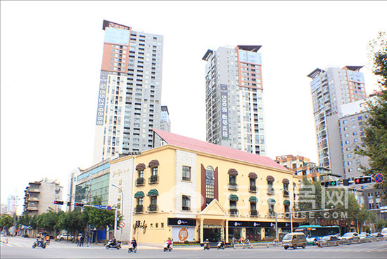 在近日,連日來的高溫終于稍稍退散,小編趁著晴好的天氣打聽好大宥城位于白塔路延長線栗樹頭片區(qū),離新西南廣場的路程不是很遙遠,便和小伙伴們上午9點40出發(fā),步行去往那里,一路向東,經(jīng)過交三橋,昆十五中,白塔路左轉(zhuǎn)進入環(huán)城東路,半小時后就看到馬路對面幾座高樓下被簇擁著的一座充滿歐式風情的橘黃色建筑屋,乍一看以為是私人高檔商務會所,走進一看,原來是我們今天要到達的目的地,大宥城營銷中心。