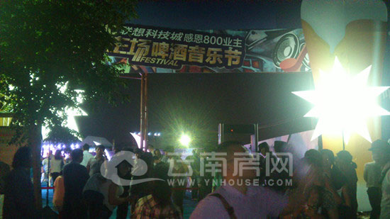 7點(diǎn)25分,燈光亮起,“聯(lián)想科技城歡迎各位業(yè)主和媒體朋友的到來(lái)!彼緝x的聲音響起,活動(dòng)開(kāi)始前,司儀首先簡(jiǎn)單介紹業(yè)主們未來(lái)的家-昆明聯(lián)想科技城,項(xiàng)目總投資100億元,地上建筑面積150萬(wàn)平方米,集總部基地、研發(fā)中心、科技金融中心、科技孵化中心、物聯(lián)網(wǎng)文化、商業(yè)中心、體驗(yàn)式3C廣場(chǎng)、聯(lián)想“智能家庭”全國(guó)推廣示范區(qū)、五星級(jí)酒店為一體。坐落五華區(qū)小屯立交旁,交通便利,配套最為齊全。司儀介紹,今晚的主題是感恩業(yè)主,希望大家在勁爆的音樂(lè)中暢飲啤酒,盡享夏日的激情!