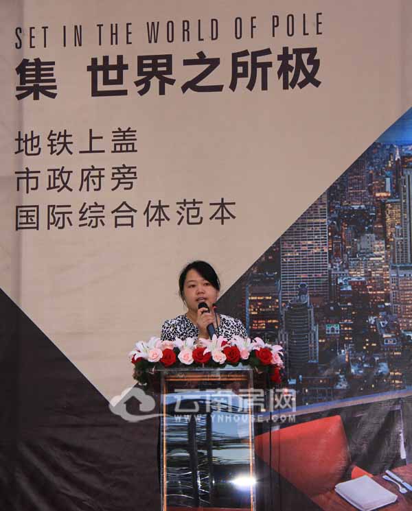 張許芳:很榮幸今天站在這里為所有的客戶和朋友們介紹ICC環(huán)球廣場這個項目,我們是集世界之所極。我們請李楊曉青代理我們的ICC環(huán)球廣場。我們看一下整個ICC環(huán)球廣場的由來,他首座是在紐約,昆明是第一站,然后進入上海、北京等各個城市。他進入一個城市,都會成為一個當(dāng)?shù)鼐C合體的范本。今天親榮幸全球的第8個ICC正式落戶我們的昆明。ICC選擇昆明的原因,我們可以看一下,第一他是5000萬人的向往,第二云南處與中國沿邊經(jīng)濟的發(fā)達地區(qū),其次昆明在去年的GDP產(chǎn)值中,昆明占整個云南的三分之一,所以他的發(fā)展可見。改寫未來將會有一個新的區(qū)域。呈貢將會成為未來城市發(fā)展的中心,它必將代表昆明的一個經(jīng)濟走向。我們可以看一下,政府為呈貢區(qū)域的發(fā)展做了幾大工作,首先,他周邊有幾大群體,北面是區(qū)政府,東南面是市政府,第二他是休閑旅游中心,將來將會打造成為昆明的旅游產(chǎn)業(yè),昆明的旅游一日游,而且在我們的項目旁邊有一條中央中央景觀軸,將會成為未來最大的景觀軸。必定會為呈貢新區(qū)的發(fā)展人才搖籃的基地。