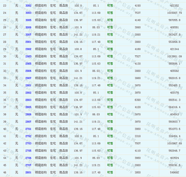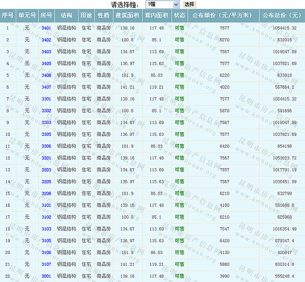根據(jù)云南省物價局關于發(fā)布《云南省商品房銷售明碼標價實施細則(試行)》的通知,現(xiàn)將該項目商品住房的準售房源及每套房屋價格向社會公布,房地產(chǎn)開發(fā)企業(yè)應嚴格按照公布價格,商品房銷售明碼標價實行一套一標。商品房經(jīng)營者應當對每套商品房按照建筑面具進行明碼標價,否則,房產(chǎn)登記機關不予登記備案。準售房源及房價信息如下: