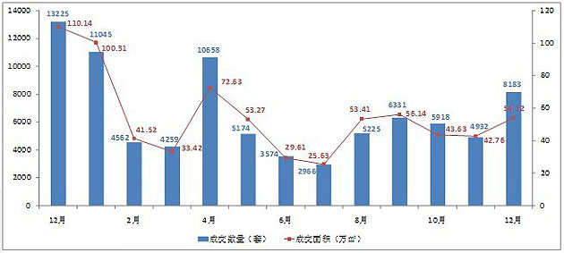 圖2-1:2011年12月房地產(chǎn)供應(yīng)面積變化