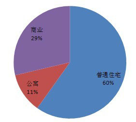圖2-6:2011年12月開(kāi)盤(pán)項(xiàng)目物業(yè)占比(數(shù)據(jù)來(lái)源昆明市房產(chǎn)信息網(wǎng),至祥研究中心整理)