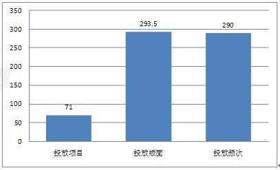 2011年以來,有不少新的房地產(chǎn)項目增加了廣告投放量,從總體投放數(shù)量和投放版面來看,12月份投放項目有71個,投放版面有293.5個,投放頻次有290次,廣告投放量與上個月相比有所下降。