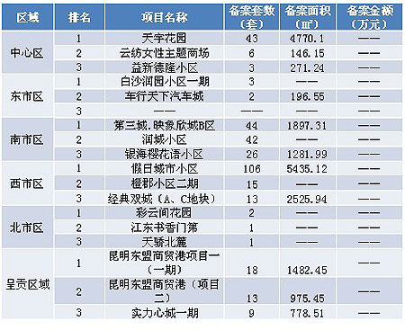本周各區(qū)域房地產市場交易套數(shù)三強:本周備案前三強分別位于西市區(qū)、南市區(qū)與中心區(qū),排名先后順序為:假日城市小區(qū)、第三城.映象欣城B區(qū)以及天宇花園。注:由于備案系統(tǒng)未公布成交金額,故備案金額暫時空白。