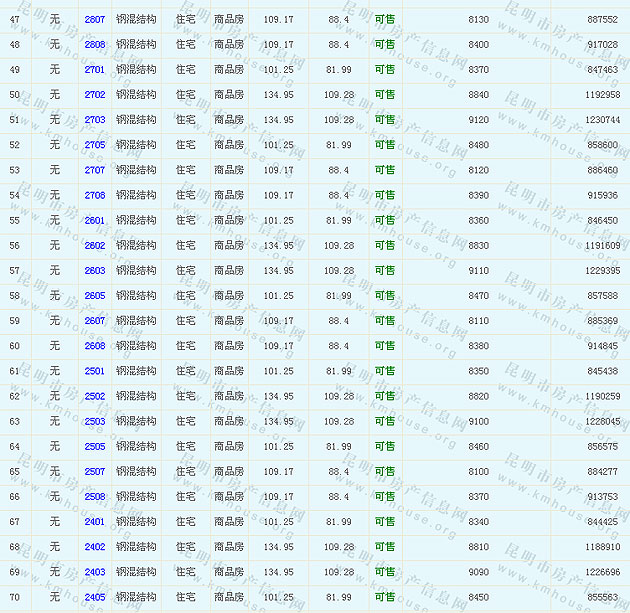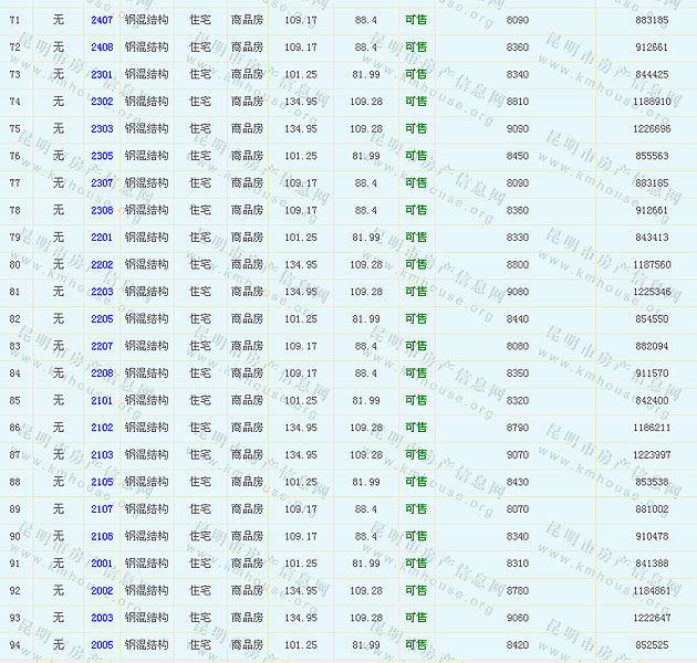金尚俊園12、3幢準(zhǔn)售房源及房價(jià)