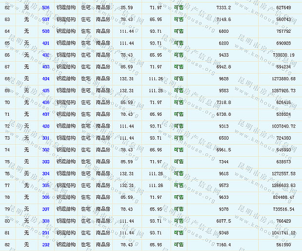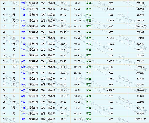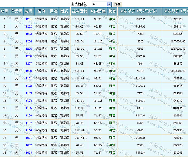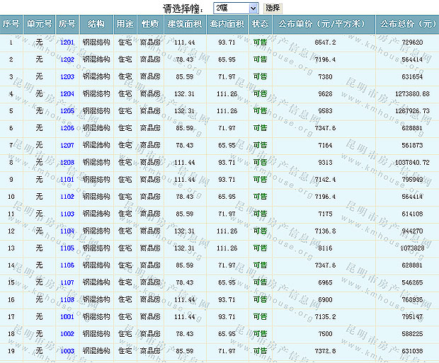 根據(jù)云南省物價(jià)局關(guān)于發(fā)布《云南省商品房銷(xiāo)售明碼標(biāo)價(jià)實(shí)施細(xì)則(試行)》的通知,現(xiàn)將該項(xiàng)目商品住房的準(zhǔn)售房源及每套房屋價(jià)格向社會(huì)公布,房地產(chǎn)開(kāi)發(fā)企業(yè)應(yīng)嚴(yán)格按照公布價(jià)格,商品房銷(xiāo)售明碼標(biāo)價(jià)實(shí)行一套一標(biāo)。商品房經(jīng)營(yíng)者應(yīng)當(dāng)對(duì)每套商品房按照建筑面具進(jìn)行明碼標(biāo)價(jià),否則,房產(chǎn)登記機(jī)關(guān)不予登記備案。準(zhǔn)售房源及房?jī)r(jià)信息如下: