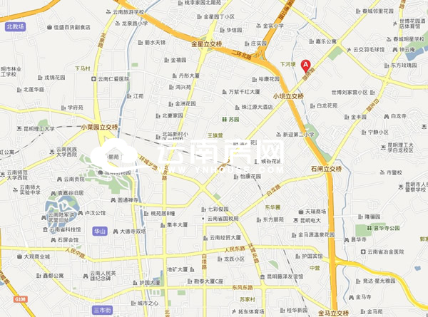 地圖上紅色長方體為禧瑞都,紅A處為昆十一中,從項(xiàng)目前往北市區(qū)或市中心均很便捷