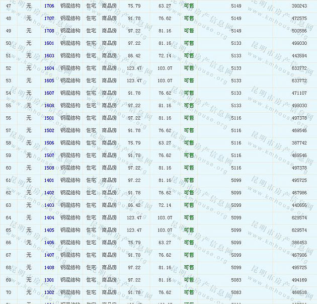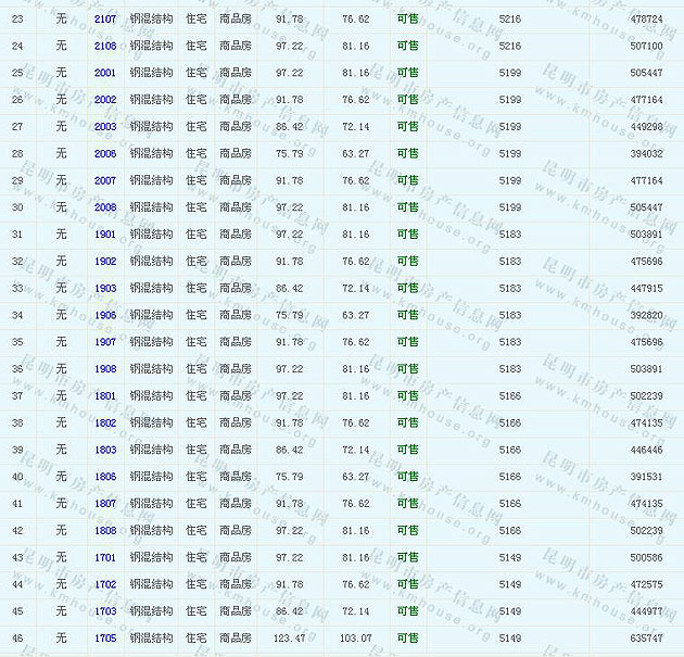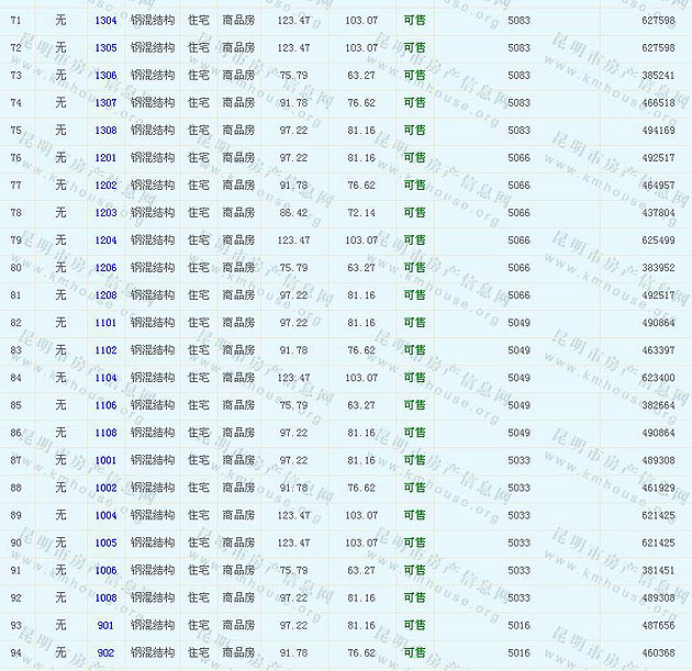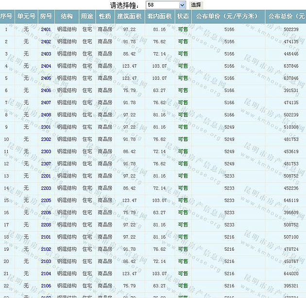 溪畔麗景1-4幢準售房源及房價公示