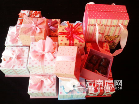 早上十點(diǎn),在眾多客戶的期待中,“情人巧克力DIY”活動(dòng)如期開(kāi)始?蛻粼趯I(yè)人員的指導(dǎo)下,仔細(xì)將巧克力原漿在加熱器上加熱,用小匙子輕輕攪拌,讓巧克力漿充分溶化,再分別灌入形狀各異的模具中。之后將放入磨具的巧克力漿裝入冰箱冷卻,巧克力的熱氣漸退,慢慢凝固成型?蛻艨蓪⒆约鹤龊玫那煽肆ρb入昆明玉器城精心準(zhǔn)備的禮盒中,饋贈(zèng)戀人和親友。