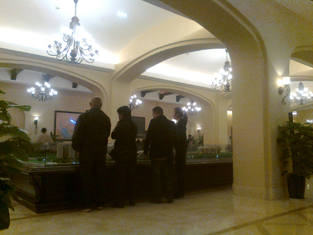 沙盤前駐足的購(gòu)房者