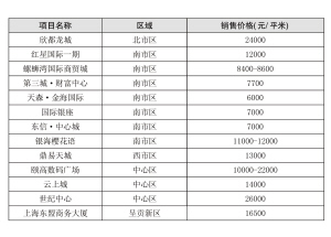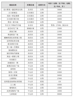 昆明部分在售商業(yè)項(xiàng)目?jī)r(jià)格動(dòng)態(tài)表