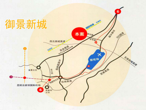御景新城距昆明新機(jī)場(chǎng)13公里,10分鐘車程,隨著2012年6月28日長(zhǎng)水機(jī)場(chǎng)的專場(chǎng)運(yùn)行,項(xiàng)目周邊的機(jī)場(chǎng)高速到主城區(qū)只需16分鐘,城市輕軌的投入使用也將主城區(qū)到機(jī)場(chǎng)的時(shí)間縮短到了15分鐘,而2011年11月正式啟動(dòng)的城際快線也將使得御景新城到主城區(qū)的時(shí)間大大縮短。