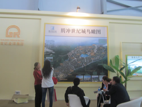 騰沖世紀(jì)城是世紀(jì)金源集團(tuán)房交會上參展的2個(gè)樓盤之一,本次參展主要以形象展示為主,銷售為輔。
