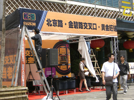 2012年昆明春季房交會(huì)有65家房企攜90個(gè)項(xiàng)目參展,可謂場(chǎng)面壯觀,就連平時(shí)未啟用的3號(hào)館也未能幸免,首次實(shí)現(xiàn)6個(gè)展館一齊開放。而未能擠進(jìn)展館的樓盤,不是流動(dòng)發(fā)放宣傳資料就是有一對(duì)對(duì)帥哥靚女舉著貼有項(xiàng)目名稱的牌子,四處走動(dòng)。不過最讓難忘的是,在昆明市國(guó)貿(mào)中心旁的關(guān)興路上出現(xiàn)的一個(gè)名叫“金街263號(hào)”的“展位”,十分引人注目。