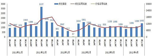 昆明住宅市場(chǎng)周度成交量?jī)r(jià)走勢(shì)
