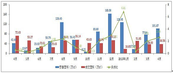 圖5-3:2012年4月房地產(chǎn)供求比變化(數(shù)據(jù)來(lái)源昆明市房產(chǎn)信息網(wǎng),至祥研究中心整理)