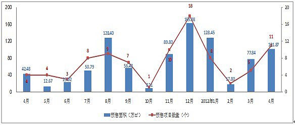圖5-1:2012年4月房地產(chǎn)供應(yīng)面積變化(數(shù)據(jù)來(lái)源昆明市房產(chǎn)信息網(wǎng),至祥研究中心整理)