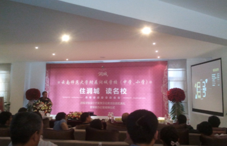 2011年5月,云南師范大學(xué)與昆明潤(rùn)城投資有限公司就共同合作建設(shè)包括小學(xué)、初中、高中一體的云南師范大學(xué)附屬潤(rùn)城學(xué)校舉行了合作辦學(xué)簽字儀式。云南師大附中附小潤(rùn)城學(xué)校投資預(yù)計(jì)8億元,占地約102畝,建筑面積約23000平方米。在此次合作中,昆明潤(rùn)城投資有限公司負(fù)責(zé)投入師大附中附小潤(rùn)城學(xué)校的全部建設(shè)費(fèi)用,并根據(jù)潤(rùn)城學(xué)校設(shè)立情況,提供足夠的經(jīng)費(fèi)確保學(xué)校的正常運(yùn)行。云南師范大學(xué)負(fù)責(zé)投入辦學(xué)品牌、辦學(xué)理念、辦學(xué)經(jīng)驗(yàn)、骨干教管人員等無(wú)形資產(chǎn),以確保潤(rùn)城學(xué)校的辦學(xué)質(zhì)量及效果。