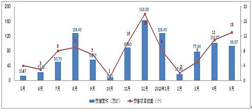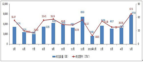 圖2-1:2012年5月房地產(chǎn)供應(yīng)面積變化(數(shù)據(jù)來(lái)源昆明市房產(chǎn)信息網(wǎng),至祥研究中心整理)