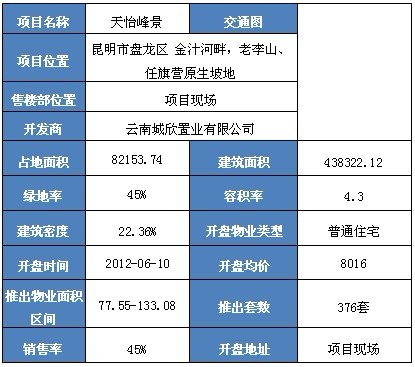 天怡峰景開盤報(bào)告:銷售率45% 均價(jià)8016元