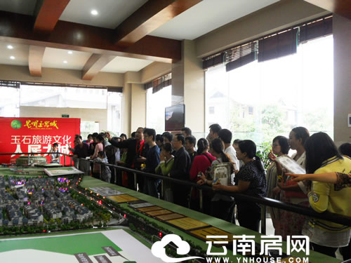 在參觀完昆明玉器城的樣板間后,看房團成員紛紛向置業(yè)顧問咨詢購房流程、價格政策等問題,一些看房團成員當(dāng)場便購買了認(rèn)籌卡。