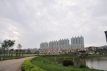 再往前就是2800畝萬輝星城,項目自2007年開發(fā)至今,已完成7期占地約1000畝的開發(fā)體量,戶數達到3800戶。前期主要包括多層公寓、花園洋房、聯排別墅、雙拼別墅、獨棟別墅等多種居住業(yè)態(tài)和與之配套的部分公建設施。放眼望去,一棟棟洋房別墅排列有序,地中海風格外立面顯得非常漂亮。不可否認,一個城市的建筑物能反映出該城市的發(fā)展狀況,高樓云集的是發(fā)達的大城市,而別墅洋房較多的肯定是一個近郊養(yǎng)生小鎮(zhèn)。萬輝星城后面是西山別墅項目,對面是林海云宵別墅,再往前有昆華苑、山水融城等。