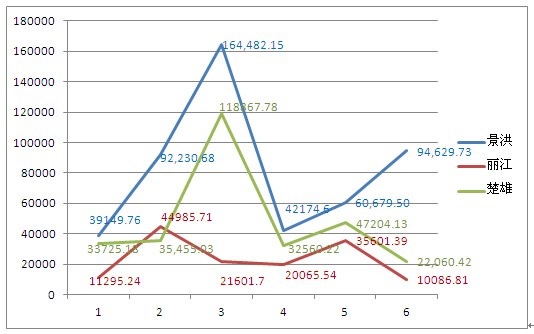 現(xiàn)在,我們?cè)賮矸治鼍昂椋ㄎ挥谠颇夏喜,西雙版納傣族自治州中部)2012年上半年的樓市狀況。據(jù)云南網(wǎng)2012年6月的某篇報(bào)道:“相關(guān)數(shù)據(jù)顯示,西雙版納旅游地產(chǎn)投資額平均增速在全省16個(gè)地州市中排名第一,旅游地產(chǎn)開發(fā)熱潮已經(jīng)遠(yuǎn)超過其他地州!被蛟S,這可以很好地解釋景洪為什么能在2012年上半年成交3747套商品房(為三州市中的第一名)。