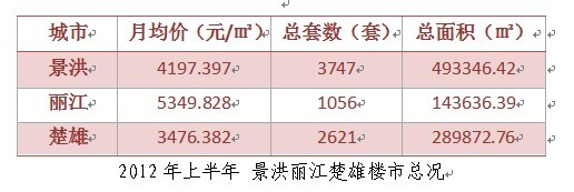 2012年上半年州市樓市成交分析:麗江成交均價(jià)5349元/㎡