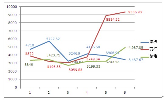 由以上信息我們可以看出,2012年上半年內(nèi),三個(gè)州市的樓市狀況差異很大。從成交總套數(shù)和成交總面積來(lái)看,麗江僅為景洪的三分之一左右。而從成交均價(jià)來(lái)看,成交量最少的麗江比成交量名列第二的楚雄足足多出了1872.996元/㎡。為什么會(huì)出現(xiàn)這兩類情況?下面,我們來(lái)進(jìn)行詳細(xì)分析。