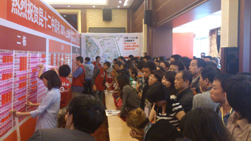 9:20時,工作人員還在緊張有序地進行各項準備,但有些購房者卻已經(jīng)按捺不住了。一些購房者看見帶有“工作人員”證件的人就問道:“不是說9:00正式開盤嗎?為什么到現(xiàn)在還沒有動靜?”