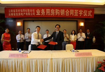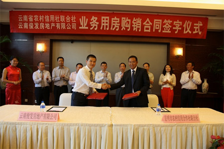 俊發(fā)地產(chǎn)與云南省農(nóng)村信用聯(lián)合社簽約儀式在翠湖賓館隆重舉行