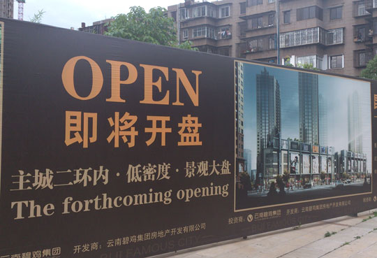 作為昆明市二環(huán)內(nèi)最大的單個(gè)城中村改造項(xiàng)目,碧雞名城很容易吸引人的眼球。但它最惹人注意的或許是其一再無法兌現(xiàn)的開盤時(shí)間。云南房網(wǎng)以“碧雞名城”、“開盤”作為關(guān)鍵詞在百度新聞里進(jìn)行搜索,發(fā)現(xiàn)該項(xiàng)目曾經(jīng)預(yù)告的開盤時(shí)間至少有四個(gè):2011年1月、2012年初、2012年4月、2012年8月,真是“千呼萬喚始出來,猶抱琵琶半遮面”。好在,最近這一次開盤時(shí)間或?qū)⒊烧妗?a href="http://m.hhclub.cn"target="_blank">云南房網(wǎng)在項(xiàng)目現(xiàn)場(chǎng)的廣告墻上見到了“即將開盤”等字眼。售樓部的置業(yè)顧問也告訴我們,其一期開盤時(shí)間或?qū)⒍ㄔ?、9月,所有房源都將是準(zhǔn)現(xiàn)房。