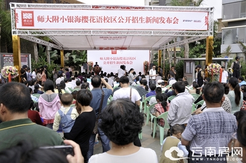 今日上午暢園二期·銀海櫻花語營銷中心門口人頭攢動、熱鬧非凡,銀海地產(chǎn)與師大附小聯(lián)手舉辦的師大附小櫻花語校區(qū)現(xiàn)場招生新聞發(fā)布會及師生見面會隆重舉行,現(xiàn)場吸引來了不少學生及家長前來咨詢,此次師大附小櫻花語校區(qū)將定于本月17-18日對社會公開進行現(xiàn)場預報名,今年9月正式開課,據(jù)了解本次招生為師大附小一年級,共開設6個班,針對銀海櫻花語、暢園一期的業(yè)主除了可以享受優(yōu)先入學的條件外,還可以享受入學優(yōu)惠等的政策,現(xiàn)場銀海地產(chǎn)還為已經(jīng)報名的銀海業(yè)主準備了開學大禮包,以表達銀海對業(yè)主及其家庭的關切。
