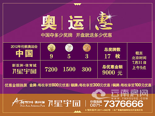 2012倫敦奧運,中國奪多少枚金牌新亞洲體育城7期星宇園就送多少優(yōu)惠!