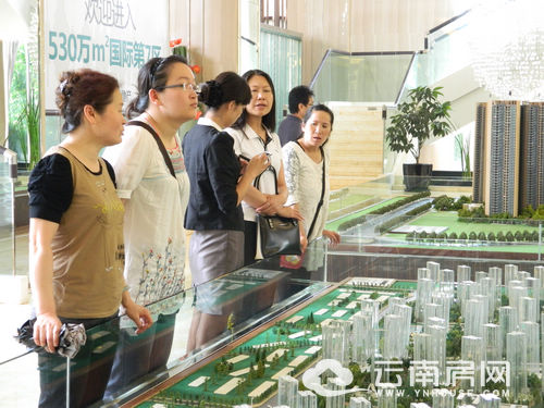 云南房網(wǎng)看房團(tuán)成員們?cè)谙挛?點(diǎn)左右達(dá)到位于廣福路的海倫國(guó)際的售樓部。