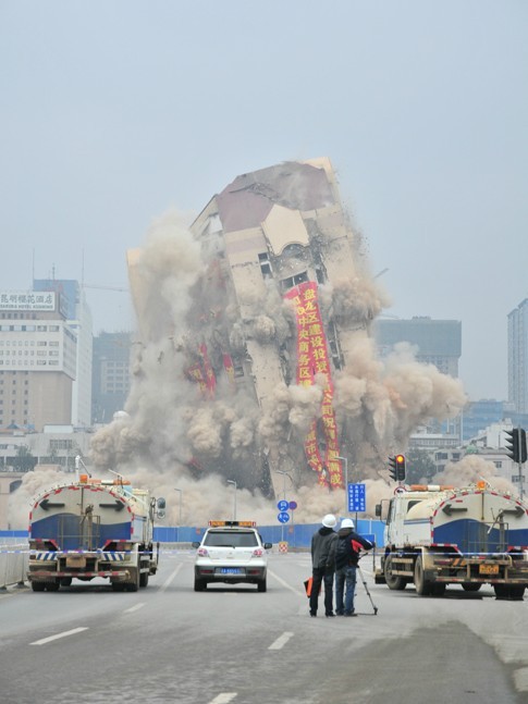 原昆明市政府辦公大樓爆破情景