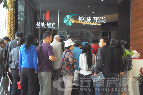 上午8點(diǎn)40分左右,銘誠東尚售樓部的已經(jīng)擠滿了前來認(rèn)籌的人群。
