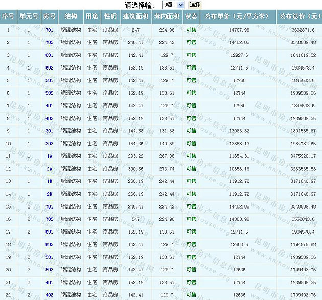 滇池湖岸花園一期住宅(公園1903)準(zhǔn)售房源及房價