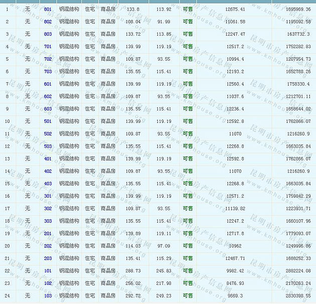 滇池湖岸花園一期住宅(公園1903)準(zhǔn)售房源及房價(jià)