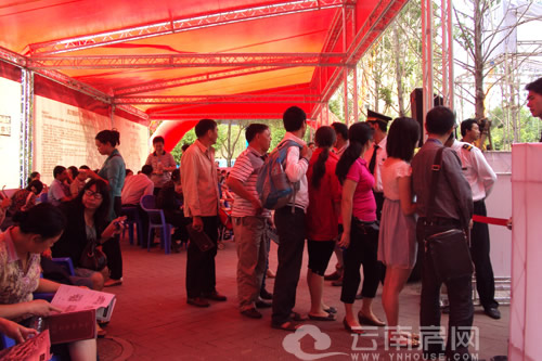上午9時,云南房網(wǎng)在濱江俊園的售樓部看到,雖然才開始5分鐘,但是已有100多人完成了登記,進入等候區(qū)內(nèi)等候。大多數(shù)購房者都攜帶家人一起,他們一家數(shù)口人圍在一起,討論戶型鑒賞書上的戶型圖,挑選自己中意的戶型、樓層、朝向。濱江俊園在現(xiàn)場為等候的購房者準備了水果、蛋糕和飲料,購房者紛紛帶著小孩去挑選自己喜歡的糕點,他們一邊品嘗著糕點水果,一邊等侯進入銷控區(qū)。