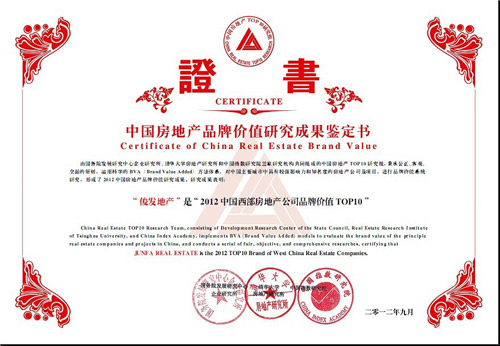 俊發(fā)地產(chǎn)獲“2012中國西部房地產(chǎn)公司品牌價(jià)值TOP10”等多項(xiàng)榮譽(yù)