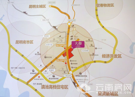 大都,位于昆明市官渡區(qū)彩云北路與珥季路交叉口,緊靠地鐵1號(hào)線(xiàn)站口,從項(xiàng)目區(qū)位圖上可以看到,彩云北路為昆明主城區(qū)通往呈貢新城區(qū)的必經(jīng)之道,從昆明南市區(qū)及滇池高檔住宅區(qū),經(jīng)廣福路與環(huán)湖東路要進(jìn)入世紀(jì)城片區(qū),則必經(jīng)之路就是珥季路。同時(shí)彩云北路與珥季路的交匯形成了一個(gè)輻射昆明主城區(qū)、昆明南市區(qū)、滇池高檔住宅區(qū)、呈貢新城區(qū)、經(jīng)濟(jì)開(kāi)發(fā)區(qū)、空港物流區(qū)6大片區(qū)的中心區(qū)域。